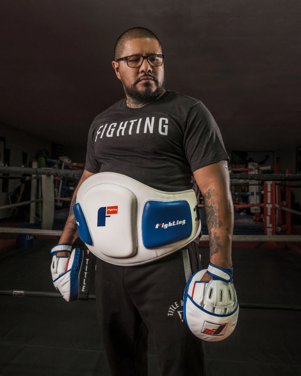 All new and invigorated, the pride and passion of Japan for decades is now exclusively available in Fighting! Genuine 100% low grain leather cover delivers the ultimate durability and longevity. Fighting’s exclusive assemblage of multi-layered F86 EVA and MX superior closed cell foams for a professional body protector befitting elite trainers and coaches around the world. Crafted and manufactured to extend exceptional impact resistance and shock absorbency with less bulk. The professional quality foams that are included will maintain their extensive impact resistance and superior coverage properties from beginning to end. A 3” wide industrial adjustable seatbelt nylon rear strap with PVC buckle closure assures a secure, confident fit. Complete with three protruded sponge rubber front targets, screened accented leather inside liner and riveted reinforced waist strap attachments. Compact contoured design offers wrap around coverage, excellent mobility and allows quick on and off. Ideal for use in combination with punch mitts for a full body training workout.