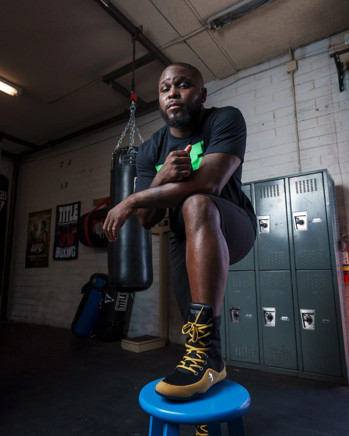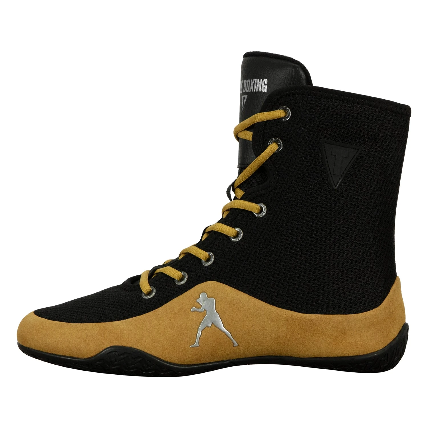 A turning point in the boxing shoe world is now available at TITLE Boxing with the TITLE Turning Point Boxing Shoes. This boot is made with air mesh upper combined with a synthetic suede leather base and it provides the perfect blend of cool comfort and strong support. The Flexible soles with groove pattern grips vinyl and canvas surfaces for quick movement. Includes Antibacterial fabric lining that provides comfort and helps odor prevention. We even went a step further with Color contrasting accents and laces to make you stand out. Mid Top design measures 6“ in height.