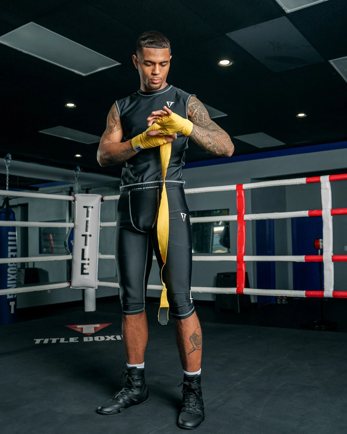 A super blend of polyester and elasticized spandex that professionally conforms to every area of the hand and fist to provide a custom form fit for every athlete. Semi-stretch elastic affords extra support and a custom, natural fit. Thicker cut and extra-long 180″ length offers excellent protection and coverage. Complete with reinforced starter thumb loop and extra wide hook-and-loop security for a snug, secure fit during training and workouts.